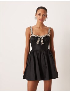 For Love & Lemons contrast bow bodice skater midi dress in black