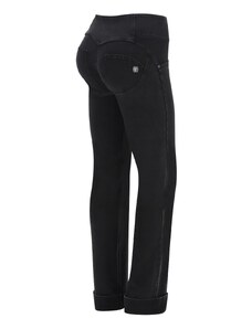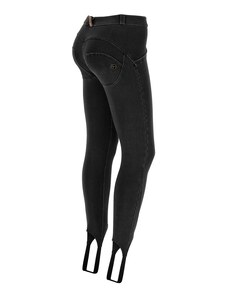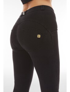 Freddy WR.UP kalhoty v džínově černé, normální pas, 7/8 délka, gumové pásky na nohavicích