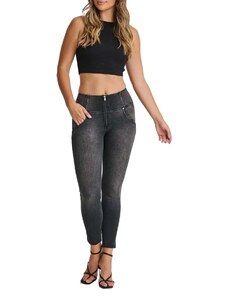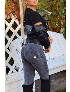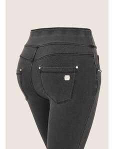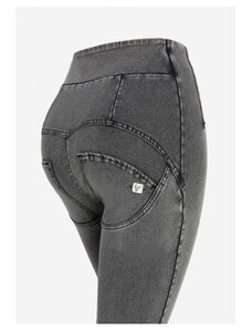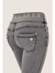 Freddy kalhoty WR.UP v šedé džínové barvě (lived-in look) super vysoký pas, tři knoflíky, superskinny střih