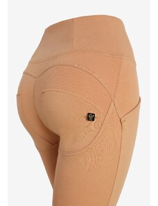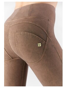 Freddy kalhoty WR.UP v hnědo-cihlové barvě, vysoký pas na zip, super skinny střih na zip, 7/8 délka