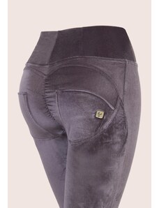 Freddy dámské kalhoty WR.UP s vysokým pasem ve stylu, velvet efekt v šedé barvě, superskinny, 7/8 délka