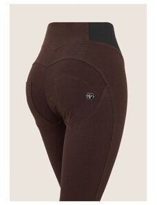 Freddy dámské kalhoty WR.UP s vysokým pasem ve stylu, tmavě hnědá barva, v pase guma černá, superskinny, 7/8 délka