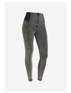 Freddy kalhoty WR.UP v šedivé barvě, super vysoký pas, super skinny střih, kamínky na nohavicích