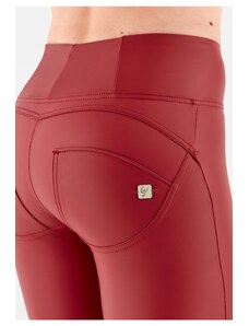 Freddy kalhoty WR.UP koženkové červené, vysoký pas, skinny střih, eco-friendly materiál