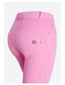 Freddy kalhoty WR.UP v růžové barvě, DIWO materiál, vysoký pas, superskinny střih, 7/8 délka