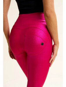 Freddy kalhoty WR.UP v fuchsiové lesklé barvě, vysoký pas, super-skinny střih, klasická délka