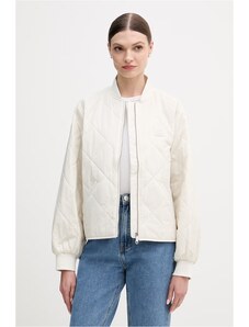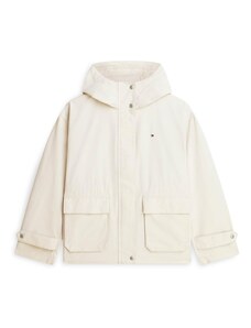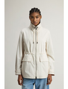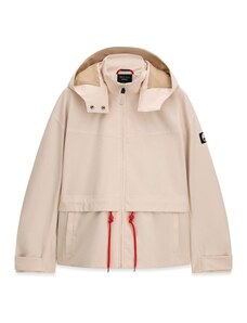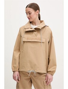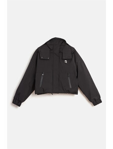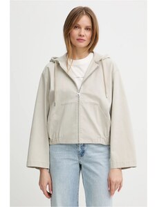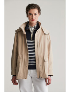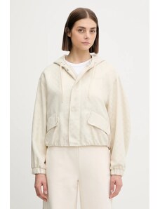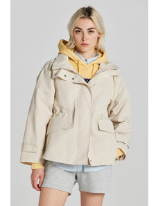 Dámská větrovka s kapucí. Rovný pasový střih s límečkem, légou překrývající zip a tkaničkou na stažení v pase a na kapuci doplňují tonální kovové druky, boční kapsy s patkou a propracovaná manžeta se zapínáním. Bunda je opatřena vnitřní kapsou a jemnou podšívkou z recyklovaného syntetického materiálu. Dokonale praktický a všestranný kousek, který stylově doladí Váš jarní outfit.