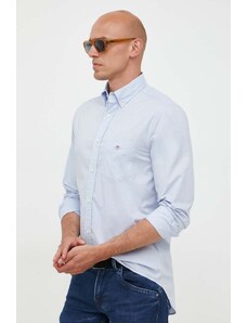 Pánská kostkovaná košile Gant je klasickým prvkem šatníku, který se skvěle hodí pro ležérní i elegantní styling. Tento model z bavlny zajišťuje celodenní pohodlí při nošení. Díky kostkovanému vzoru a límečku se zapínáním na knoflíčky (button-down) je ideální volbou pro smart casual i ležérní outfity a podtrhuje individuální styl.