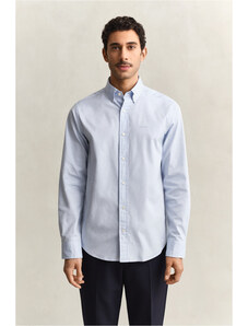 Pánská košile rovného střihu s dlouhým rukávem. Ikonický button down límec se třemi knoflíky, logo Gant vyšité na hrudi. Materiálové složení je tvořeno dokonale poddajným žerzejem v jemně zrnité, prodyšné textuře. Příjemně měkké bavlněné vlákno je díky svým prémiovým vlastnostem a kvalitě zpracování zárukou vysoce komfortního pocitu v průběhu nošení. Nenahraditelný základ ležérně-elegantního stylingu, který si zamilujete nejen pro svou všestrannou kombinovatelnost a nenáročnou údržbu.