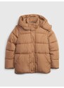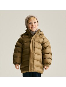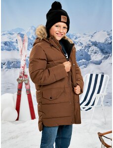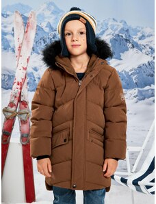 - Dětská jednobarevná zimní bunda. - Prošívaná a zateplená umělým beránkem. - Kapuci lze odepnout. - U krku vysoký límec. - Zapínání na zip a krycí klopu. - Našité velké otevřené kapsy. - Rovný a delší střih. - Poutko k zavěšení.