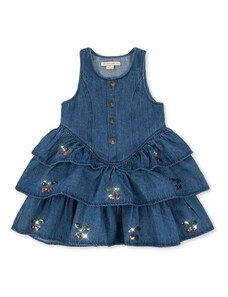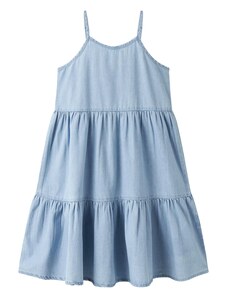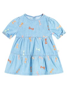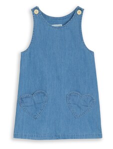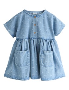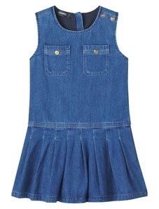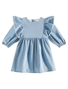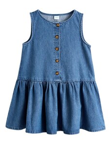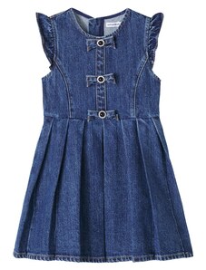 Dívčí džínové šaty z pevného denimu s ozdobnými mašlemi kombinují klasický vzhled s pohodlím na každý den. Vyrobeny z autentického, nepružného denimu v tradičním modrém odstínu, který je odolný a zároveň příjemný na nošení. Kulatý výstřih se zapínáním na knoflíky vzadu usnadňuje oblékání, přední část zdobí ozdobné mašle a nabírané rukávy s pružnými manžetami dotvářejí celkový vzhled. Elastický pas vzadu zajišťuje pohodlné padnutí a volnost pohybu. Relaxed střih je rovný, šaty sahají nad kolena. Vyrobeno v rámci programu Washwell, který při výrobě denimu šetří vodu, a v továrně podporující rovnost pohlaví prostřednictvím iniciativy RISE. Materiál: 100% Cotton Better Cotton