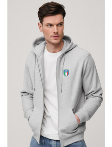 Mikina s Kapucí na Zip, Barva Šedá, s Potiskem Calcio
