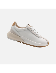 Bílé dámské tenisky Geox Spherica ECUB-3 s elegantními zlatými detaily pro každodenní nošení.Bílá barva kombinuje s letními šaty, džíny i jogíngovými soupravami, zatímco zlaté prvky dodají eleganci i sportovnímu outfitu. Technologie Spherica tlumí nárazy při dlouhé chůzi nákupními centry a off-white podešev skryje běžné nerovnosti lépe než čistě bílá.Technologie Respira️ → odvádí pot při aktivním dni v městských ulicíchMetalické zlaté prvky → dodají eleganci i sportovnímu outfituTexturovaný hnědý pruh s kovovou sponou → odliší vás od běžných bílých tenisekBílá barevná kombinace → kombinuje s letními šaty, džíny i jogíngovkamiOff-white podešev s hnědým spodkem → skryje běžné nerovnosti lépe než čistě bíláTechnologie Respira️ – perforovaná podešev s membránou odvádí vlhkost a udržuje chodidla svěží po celý den.Technologie Spherica️ – speciální konstrukce poskytuje optimální tlumení a pružnost při každém kroku.Vhodné pro nákupy v obchodních centrech, procházky městem nebo setkání s přáteli na ká