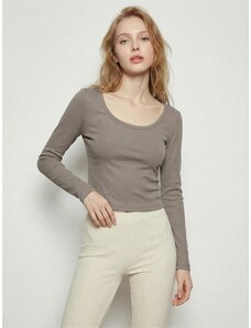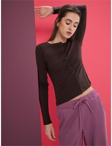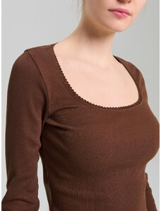 Sinsay - Halenka s podílem bavlny s dlouhým rukávem - tmavě hnědá