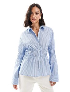 ASOS DESIGN oversized shirt with shirring details in blue stripe