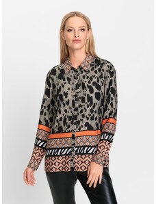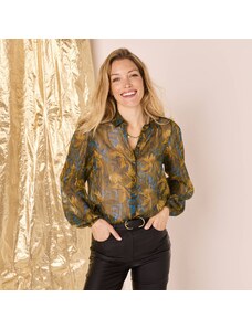 Blancheporte Voálová halenka s potiskem a metalickými vlákny khaki/modrá