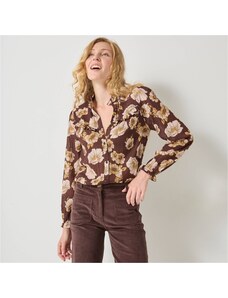 Blancheporte Volánová halenka s potiskem květin čokoládová