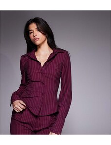 Kaiia exclusive button front fitted shirt co-ord in burgundy pinstripe-Red