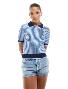 ASOS DESIGN plated knitted polo top in blue stripe