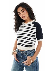 Gina Tricot scoop neck slim fit short sleeve rib top in black and white stripe-Multi