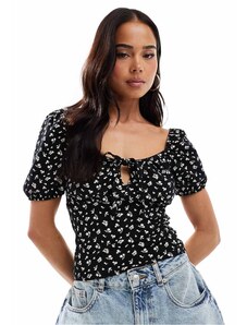 Miss Selfridge tie front milkmaid top in ditsy print-Multi