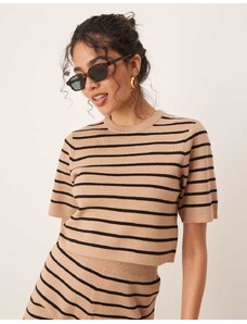 Brave Soul Co-ord short sleeve knitted t-shirt in tan and black stripe-Brown