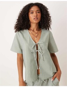 JDY tie front seersucker top co-ord in green stripe