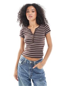 Hollister short sleeve v neck button detail t-shirt in brown stripe