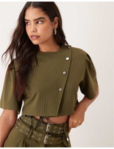 Ghospell cropped pinstripe top co-ord in green