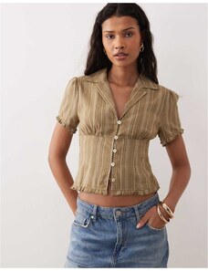 Kiss the Sky collared halter neck striped top in olive green