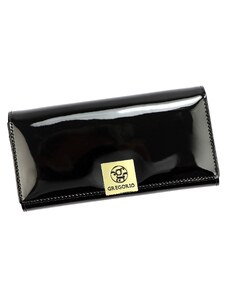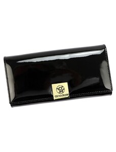 Dámská kožená peněženka, která je vyrobena z pravé přírodní lakované kůže, ve které je vyražený moderní „kroko“ vzor. Celkový vzhled peněženky působí velmi vkusně a elegantně. Peněženka se zavírá na druk. Uvnitř nalezneme přihrádky na platební karty a doklady, mincovník na zip a fochy na papírové bankovky. Logo na přední straně je zlaté barvy, peněženka je dodávána v papírové krabičce.