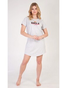 Vienetta Dámská noční košile s krátkým rukávem Méďa Smile - světle šedá