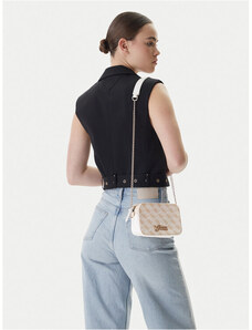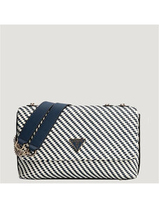 Elegantní kabelka GUESS bílá s černými pruhy. Kabelka se uzavírá pomocí magnetu. Je opatřena 1 ramenním zlatým řemínkem. Uvnitř se nachází kapsa na zip. Kabelku zdobí zlatý štítek s logem GUESS.
