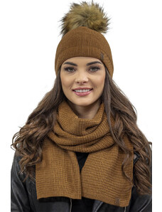 MladaModa Dámská čepice s kožešinkovou bambulí model 1941 barva camel