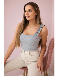 K-Fashion Halenka bez ramínek s volánky šedá