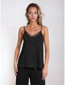 K-Fashion Dámská halenka na ramínkách s krajkovým zakončením černá