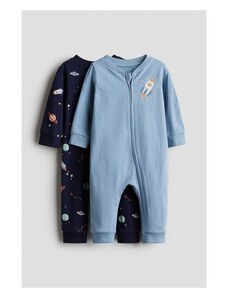 H&M - Bavlněný pyžamový overal 2 kusy - modrá