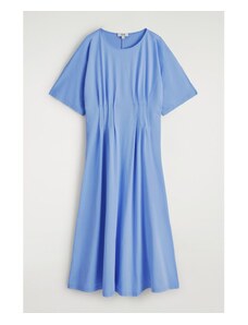 H&M - BAVLNĚNÉ MIDI ŠATY S PROŠÍVÁNÍM - modrá