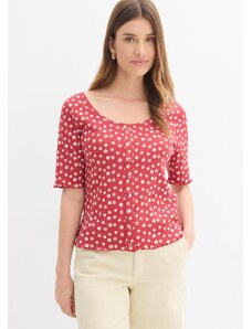 Bonprix Žebrované tričko s květinovým potiskem, polodlouhý rukáv červená Žena