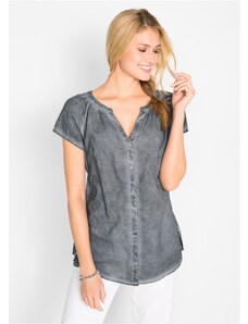 Bonprix Bavlněná halenka Cold Dyed z udržitelné bavlny, krátký rukáv šedá Žena