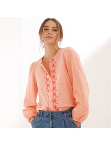 Blancheporte Halenka na knoflíčky s výšivkou a kulatým výstřihem broskvová