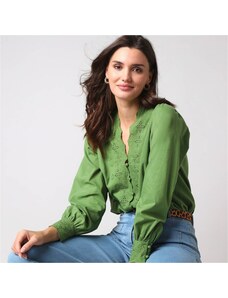 Blancheporte Košilová halenka z bavlny s macramé růžová pudrová