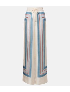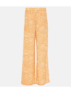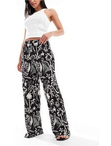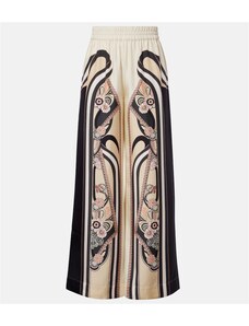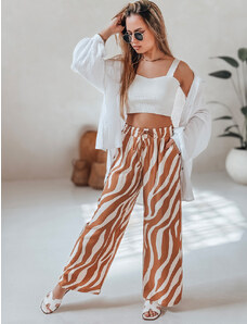 Vychutnejte si léto v lehkých kalhotách, které spojují bezkonkurenční pohodlí s ženským šarmem. Jejich splývavý, na dotek jemný materiál zajišťuje celodenní komfort a příjemný pocit na kůži. Praktický pružný pas se stahovací šňůrkou umožňuje snadné přizpůsobení postavě. Vysoké přední rozparky smyslně odhalují nohy při každém kroku a dodávají kalhotám elegantní, vzdušný vzhled. Široké nohavice garantují maximální volnost pohybu a pohodlí. Kalhoty zdobí nádherné květinové a kašmírové vzory v harmonických barvách, které snadno zkombinujete s jednoduchým topem nebo halenkou.