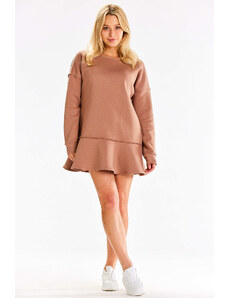 A loose dress with a ruffle at the bottom and decoratively gathered sleeves. Material composition: 95% cotton, 5% elastane The model is 172 cm tall, presented size: 36 (S) Wash at 30 degrees in a mild detergent, do not bleach, do not tumble dry. Iron at low temperature.Washing instructions: Hand wash at max. temp. 30°C, do not bleach, do not tumble dry, iron max. temp. 100°C without steam, do not dry clean