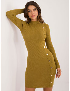 ITALY MODA Olivové pletené šaty se stojáčkem a ozdobnými cvočky -olive Khaki