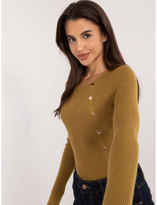 ITALY MODA Khaki dámský žebrovaný svetr s ozdobnými cvočky -khaki