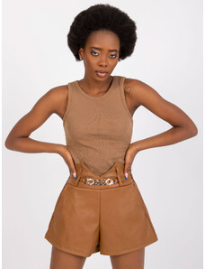 ITALY MODA Světle hnědé koženkové šortky -camel Hnědá