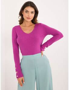 ITALY MODA Fialový žebrovaný svetr s ozdobnými cvočky -dark purple Fuchsiová