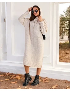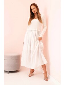 The dimensions of the dress in one size measured flat: armpit width - 46 cm, sleeve length - 60 cm, waist width - 38 cm, hip width - 45 cm, total length - 142 cm.
