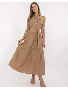 Factory Price Elegantní maxi šaty tmavě béžové (A5032)